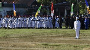 Sorong – Upacara Penurunan Bendera HUT ke-73 Kemerdekaan RI Tahun 2018 pemerintah Kota Sorong dengan Inspektur Upacara Wadan Lantamal XIV Sorong Kolonel Laut (P) Robertus C. Waskito SE, MM., Asren Danlantamal XIV sorong Kolonel Laut (P) Giat Pangaribuan, Kasi pers Korem 171/ PVT Kolonel Inf. Rudi Andriono S.Ip., Kasiren Korem 171/PVT Kolonel Arh Eka Wahyudin, Dandim 1704/Sorong Letkol Inf Andar Dodianto Panggabean,Sip., Sekda Kota Sorong Dra. Welly Tigtigweria, Anggota DPRD Kota Sorong Syarifudin Sabonama S.E., Kepala kantor pencarian dan pertolongan Sorong Emy Freezer, S.E, M. M., Asisten III Kota Sorong Wilhelmus Asmuruf, Kadis Pora Kota Sorong Fanik Tahupeiory, S.Sos, M.H., Pimpinan SKPD, BUMN dan BUMD Kota Sorong, Veteran, tokoh Agama, tokoh Adat, tokoh Masarakat, tokoh pemuda dan tokoh perempuan, dan para pelajar Siswa siswi Se – Kota Sorong bertempat di lapangan Hocky Jln. Yos Sudarso, Kelurahan Kampung Baru, Distrik Sorong Barat, Kota Sorong-Papua Barat, Jumat (17/08/2018).