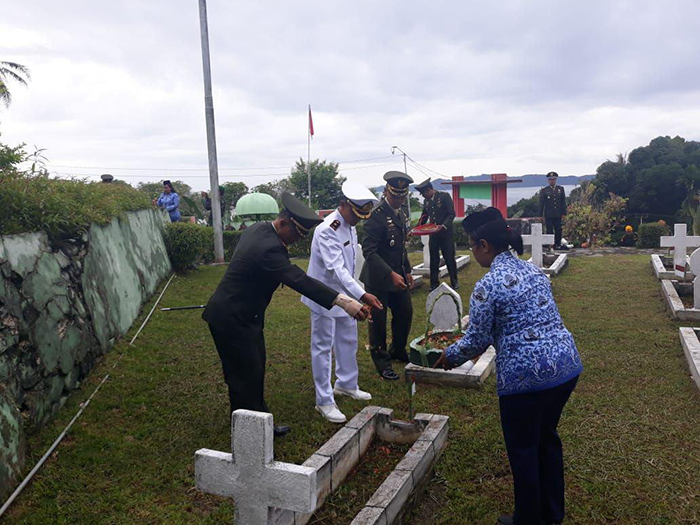 Kegiatan dilanjutkan dengan peletakan karangan bunga oleh Inspektur Upacara di tugu makam pahlawan sebagai tanda kasih sanyang dan penghormatan kita kepada para leluhur pahlawan kemerdekaan.