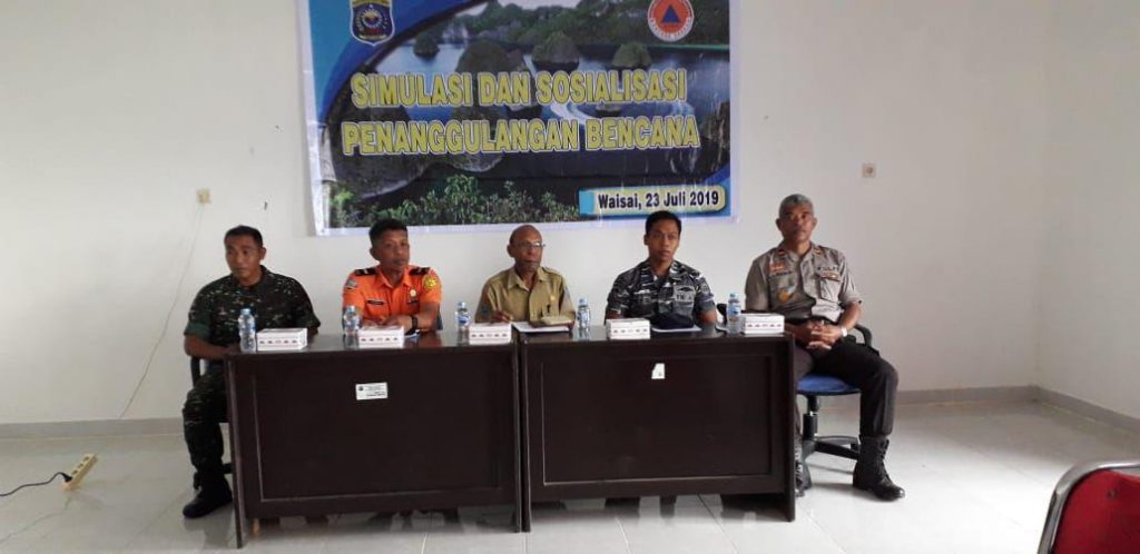 Raja Ampat – Wadanramil 01/Waisai Kodim 1805/Raja Ampat Lettu Inf Budi Santoso menghadiri Rapat Simulasi Dan Sosialisasi Penanggulangan Bencana di Kab. Raja Ampat Dipimpin Oleh Ir. Welem. J. Watem (Kepala pelaksana BPBD) bertempat Dikantor BPBD (Badan Penanggulangan Bencana Daerah) Jl. Marinda No. 4 Kel. Sapordanco Distrik Waisai Kota, Kab. Raja Ampat dan dihadiri ± 20 orang, Selasa (23/07/2019).