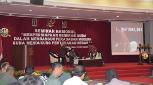 Guna menghadapi kompetisi global yang penuh dengan tantangan Generasi muda diharapkan mampu menjadi Agent of Change sekaligus berwawasan kebangsaan. Hal tersebut diungkapkan Wakil Kepala Staf Angkatan Darat (Wakasad) Letjen TNI Tatang Sulaiman pada seminar nasional yang bertemakan “Mempersiapkan Generasi Muda Dalam Membangun Peradaban Modern Guna Mendukung Pertahanan Negara”, di Lembah Tidar Akademi Militer, Magelang, Kamis (20/9/2018).