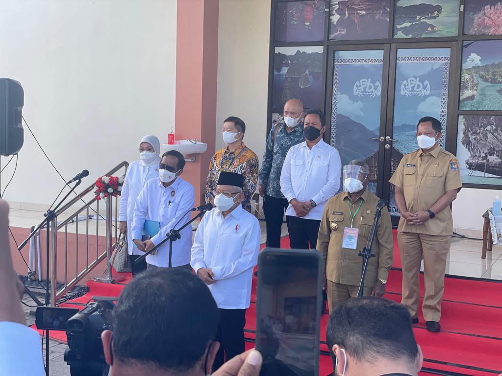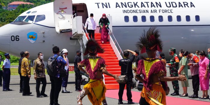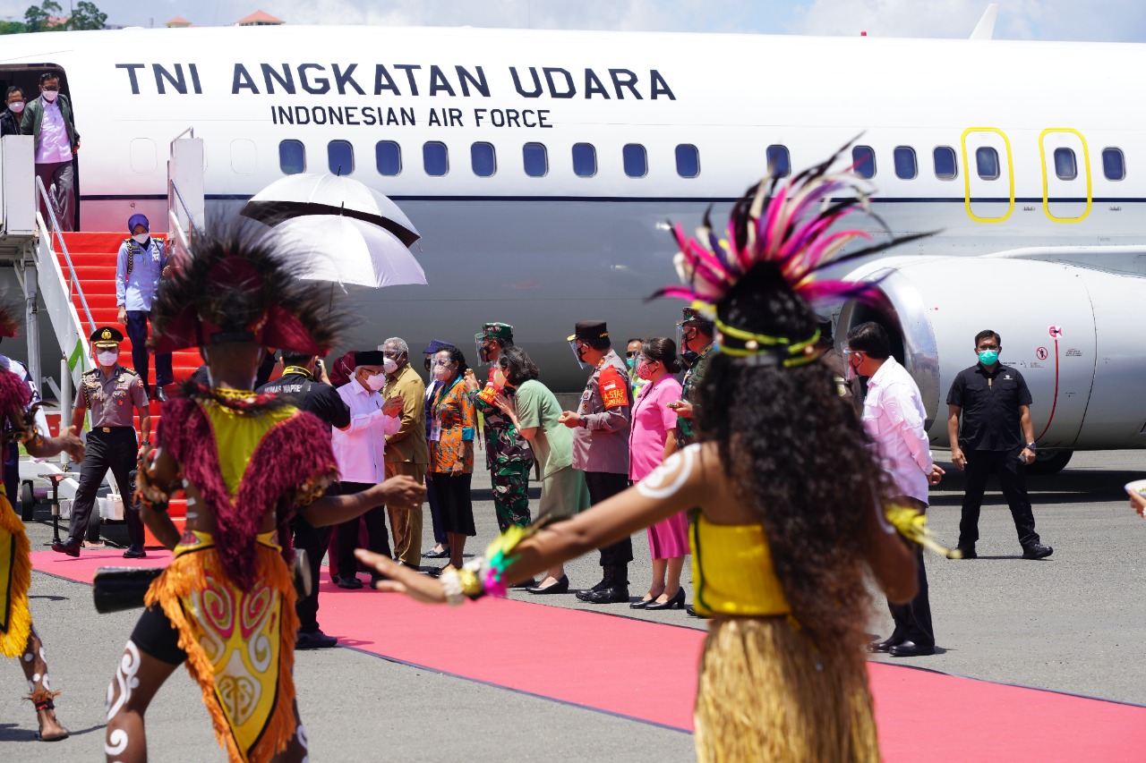 Sebelumnya, kedatangan Wapres beserta istri, Hj Wury Estu Handayani Ma’ruf Amin dan rombongan menggunakan pesawat khusus Kepresidenan, Boeing 737-400 TNI AU, di Bandara Rendani Manokwari disambut Forkopimda Papua Barat termasuk Pangdam XVIII/Kasuari, Mayjen TNI I Nyoman Cantiasa, S.E., M.Tr.(Han).