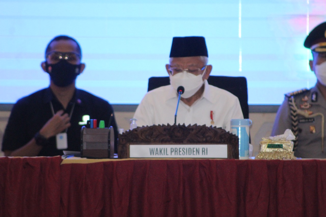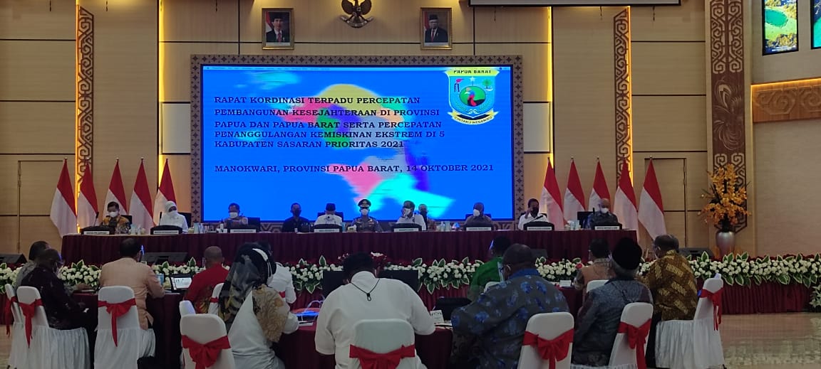 Wapres memimpin rapat koordinas dengan Gubernur Papua Barat, bersama Bupati Teluk Wondama, Teluk Bintuni, Tambrauw, Maybrat dan Manokwari Selatan sebagai Kepala Daerah dari lima wilayah prioritas penanggulangan kemiskinan ekstrim di Provinsi Papua Barat tahun 2021.