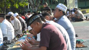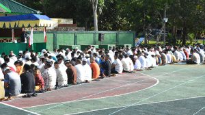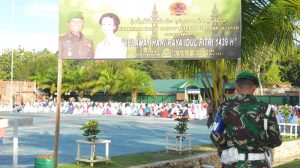 Sorong – Prajurit dan PNS Korem 171/PVT beserta keluarga dan masyarakat di lingkungan Korem 171/PVT melaksanakan Sholat ID Hari Raya Idul Fitri 1439 H tahun 2018 M, imam pada Sholat Idul Fitri Bpk Ustad Andi Bugis, S. pg bertempat di lapangan Upacara Makorem 171/PVT Jl. Pramuka No. 1 Sorong-Papua Barat, Jumat (15/06/2018).