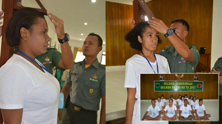 Sorong – Kasipers Korem 171/PVT Kolonel Inf Agung Gunawan, selaku sekretaris 1 Panitia penerimaan Secaba PK TNI AD TA 2017 yang diwakili oleh Pasipers Korem 171/PVT Mayor Caj (K) Selfi A. Rumbrawer, memimpin pelaksanaan seleksi Secaba PK Pedalaman, Unggulan dan Atlet kepada 94 calon Bintara PK TA 2017 didampingi oleh Kasi Intel Korem 171/PVT Kolonel Inf Albert Panjaitan, Karumkit Aryoko Mayor CKM dr. Awal selaku Tim Kesehatan, Kajasrem 171/PVT Kapten Inf Bambang Triyono dan Waka Ajenrem 171/PVT Lettu Caj Ruhdi Gayo bertempat di Aula Praja Vira Tama Korem 171/PVT Jl. Pramuka No. 1 Sorong-Papua Barat, Jumat (25/8/17).