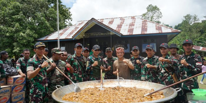 Wujud Nyata Sinergi TNI dan Masyarakat, Yonif 763/SBA berkolaborasi dengan Master Chef Bobon santoso laksanakan kegiatan “Kuali Merah Putih” di Distrik Tuhiba, Teluk Bintuni, Papua Barat(02/4/2024).