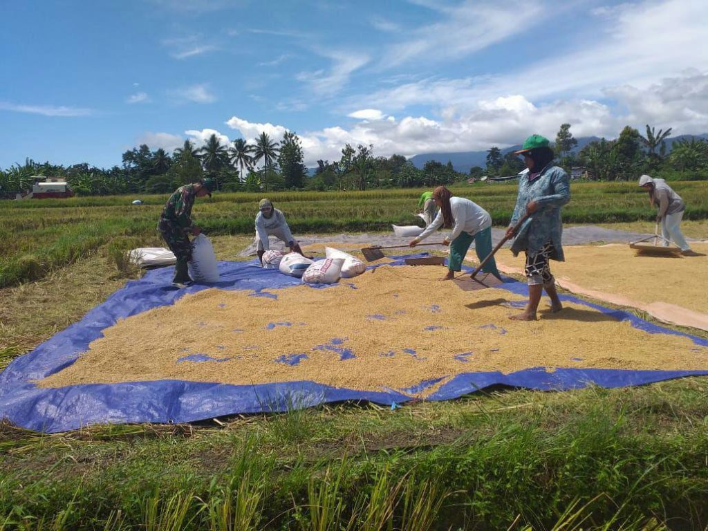 Dalam rangka meningkatkan produksi padi dan mensukseskan Program Pemerintah dalam mewujudkan Swasembada pangan Nasional. Seperti halnya Babinsa Koramil 1801-02/Warmare Serda Yusup membantu menjemur hasil panen padi para petani di kampung Prafi Mulya SP. 1 Distrik Prafi Kab. Manokwari Prov. Papua Barat, Kamis (02/05/2019).