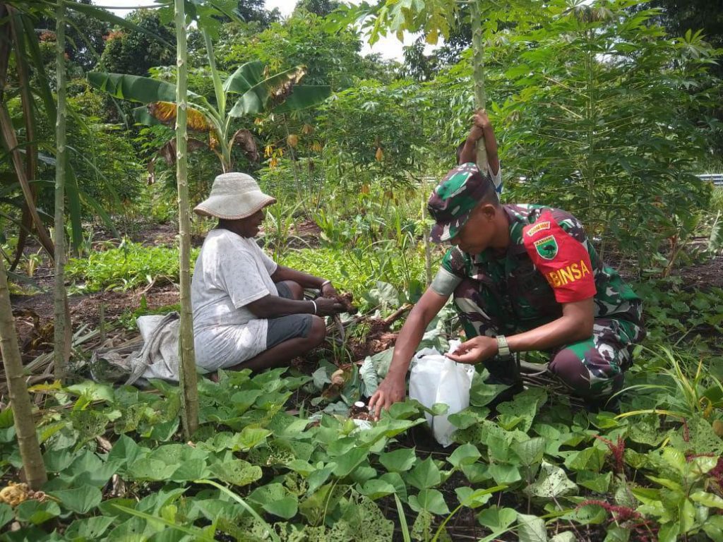 Babinsa Serda Dede Hidayat menyarankan kepada warga kampung binaannya agar bisa memanfaatkan lahan pertanian untuk ditanami tanaman pangan, salah satunya seperti keladi atau singkong. Karena tanaman ketela pohon tidak banyak membutuhkan air, sehingga dapat digunakan sebagai makanan alternatif penganti beras, dan juga bisa dibuat untuk makanan.