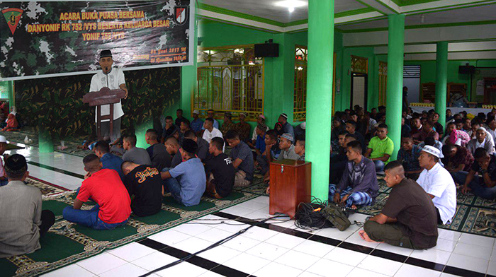 Sorong – Keluarga Besar Prajurit Batalyon Infanteri RK 752/VYS melaksanakan rangkaian kegiatan Safari Ramadhan 2017/1418 H, dengan mengusung tema “Mari tingkatkan Ukhuwah dan Silaturahmi” yang telah berjalan selama bulan Ramadhan di beberapa Masjid yang berada di Kota Sorong, (Kamis 15/06/2017).