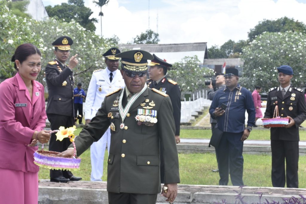 Manokwari – Pangdam XVIII/Kasuari Mayjen TNI Joppye Onesimus Wayangkau beserta para Asisten, Kabalak, Persit dan para Prajurit Kodam XVIII/Kasuari mengikuti ziarah di TMP Trikora bersama personel Polda Papua Barat, Pemprov Papua Barat, Fasharkan AL dan komponen masyarakat Manokwari pukul 11.30 WIT, Sabtu (17/08/2019).